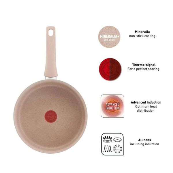 Chảo được phủ lớp chống dính Mineralia+ độc quyền của Tefal, tăng khả năng chống trầy xước và chịu nhiệt tốt hơn gấp nhiều lần so với chống dính thông thường. Lớp phủ không chứa PFOA, chì, cadmium, an toàn tuyệt đối cho sức khỏe người dùng và thân thiện với môi trường.