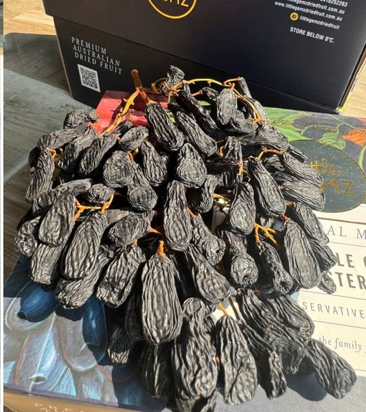 Nho Khô Nguyên Cành Ngón Tay Úc được khô tự nhiên dưới nắng từ những quả nho ngón tay đen.